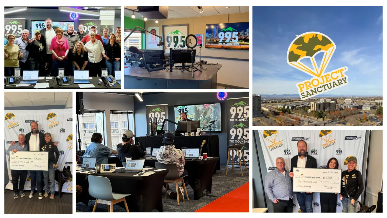 Ayer, Postman Law se enorgulleció de ser el patrocinador principal de la 8a. Radiomaratón del Proyecto Santuario el Día de los Veteranos en la 99.5 The Mountain de Denver. De 6 de la mañana a 6 de la tarde, el presentador Dan Hardee emitió doce horas de sinceras historias de valor, curación y esperanza, destacando a veteranos, cónyuges de militares y familias de militares cuyas vidas se han transformado gracias a los retiros terapéuticos y los programas de apoyo familiar del Proyecto Santuario.
